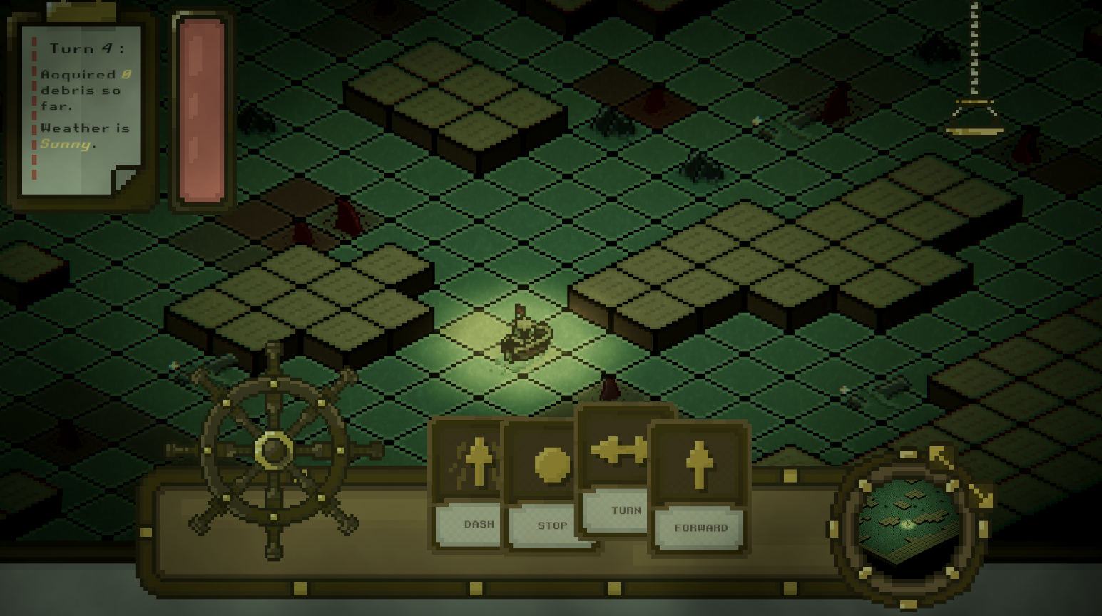 Undertow is a short tactical fishing post-apocalyptic game where you must survive in a drowned world. Plan your moves, outsmart mutated sea creatures, and salvage the debris of a lost civilisation to keep going.